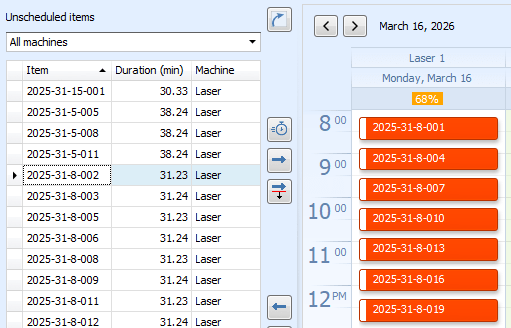 You have optimized your raw material usage and programmed your machines with Almacam 2D Cut. Now, it is time to optimize your machine scheduling. Who is cutting what, on which machine, and when. These questions shouldn’t require chasing people or checking clipboards. The Almacam Scheduler gives you the full picture: jobs waiting to be assigned, machines running at capacity, moments of unavailabilities planned ahead. Everything in one place, always up to date.